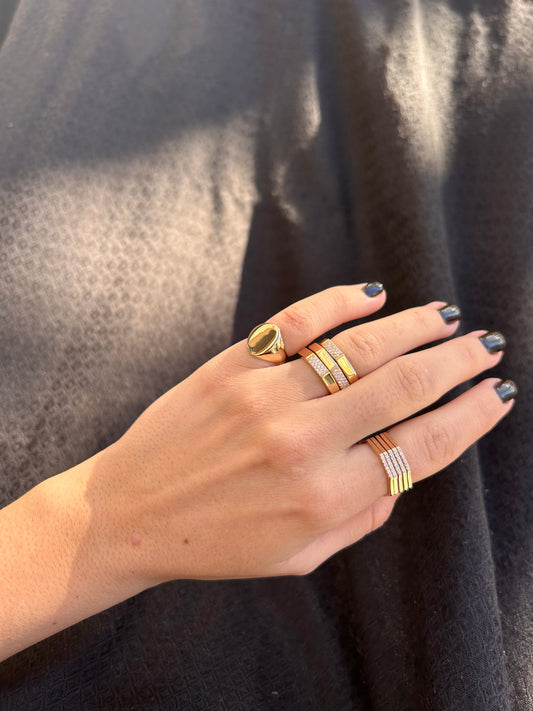 Chaque pièce allie la pureté de l'or à des lignes modernes et audacieuses, créant un contraste entre force et finesse. Conçue pour ceux qui apprécient les bijoux aux volumes affirmés, Golden Mocha offre une esthétique minimaliste mais percutante, idéale pour sublimer le quotidien avec simplicité et caractère.