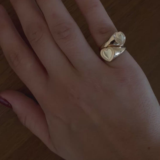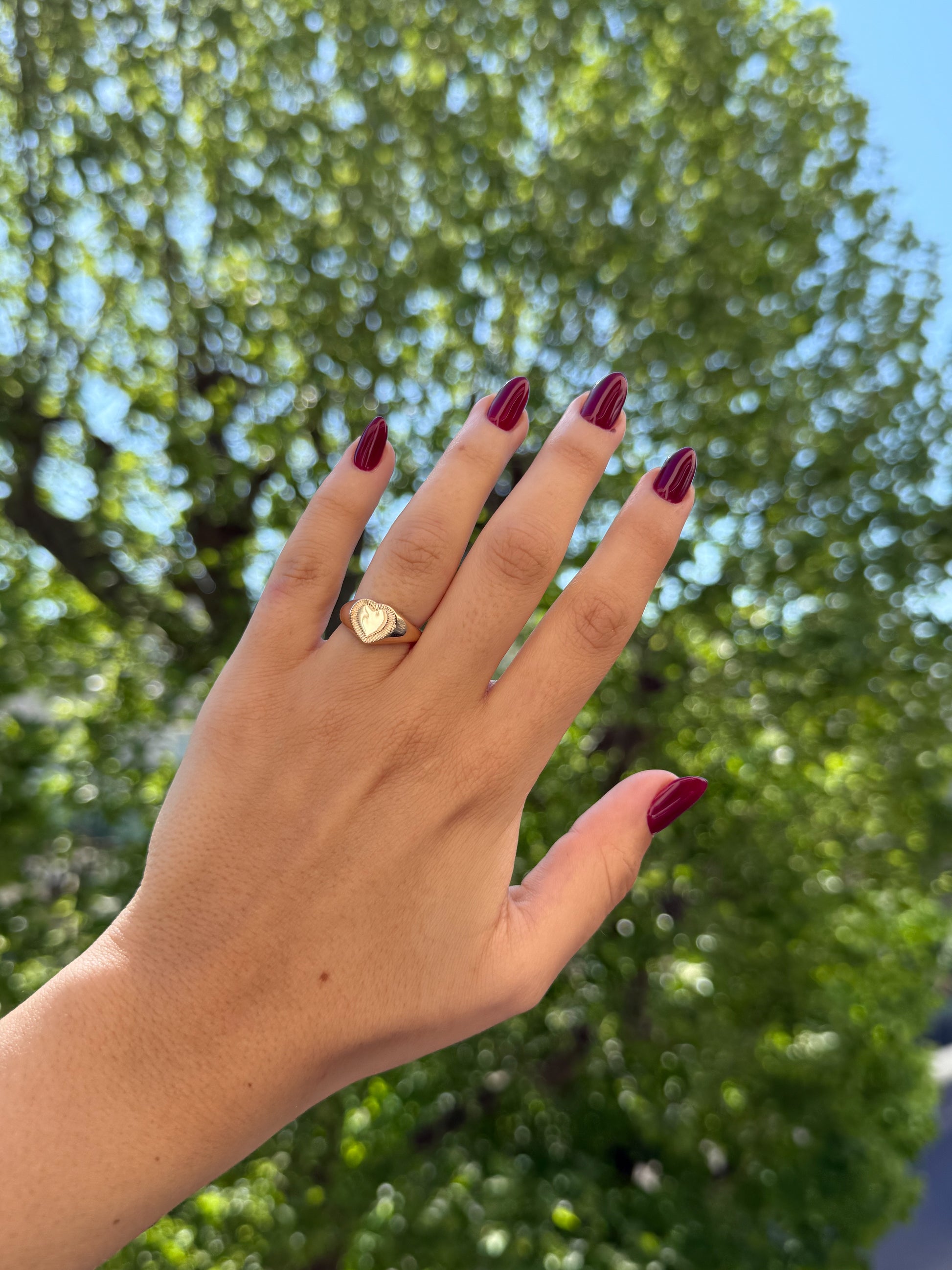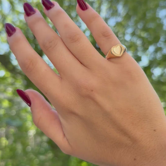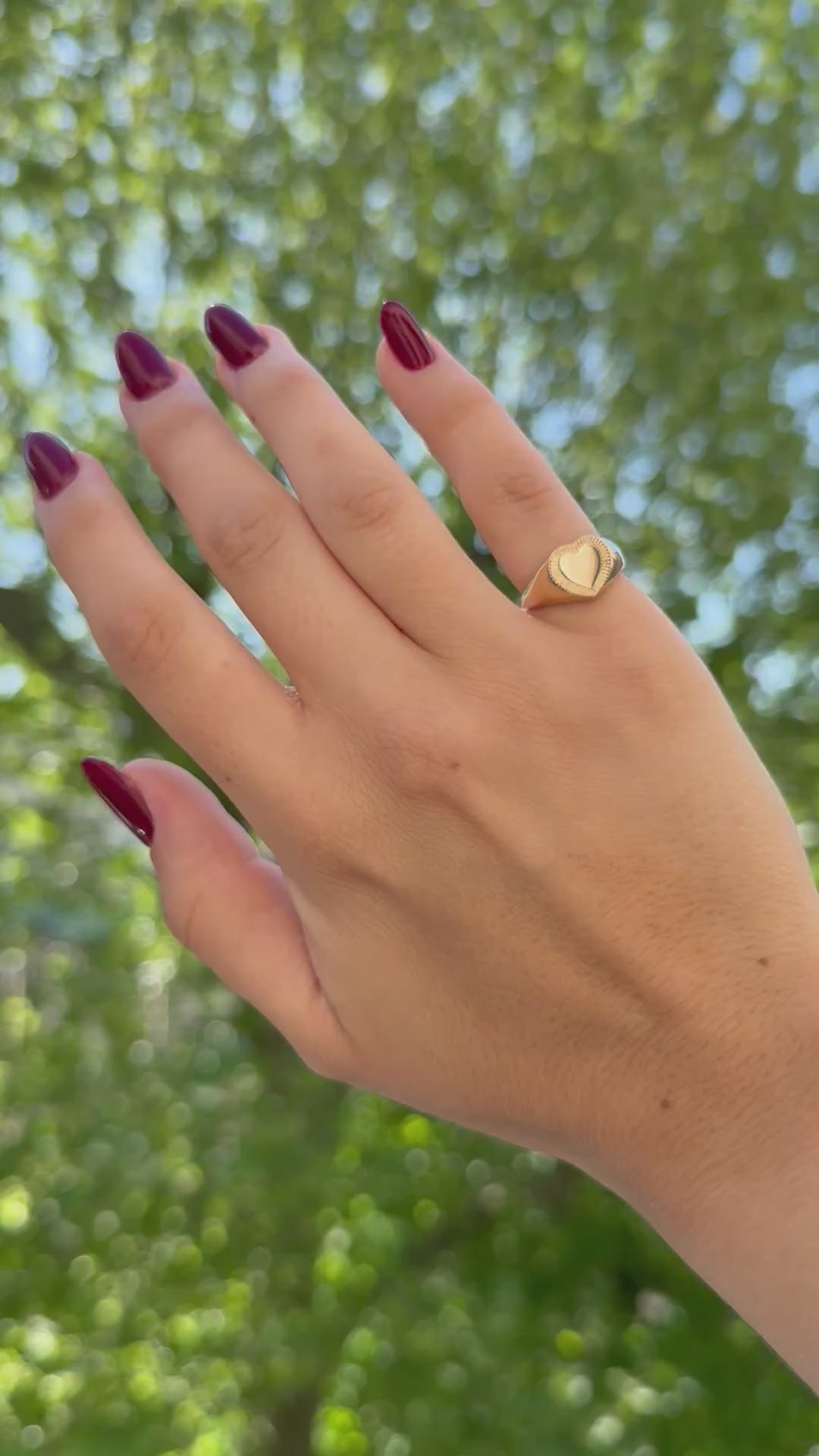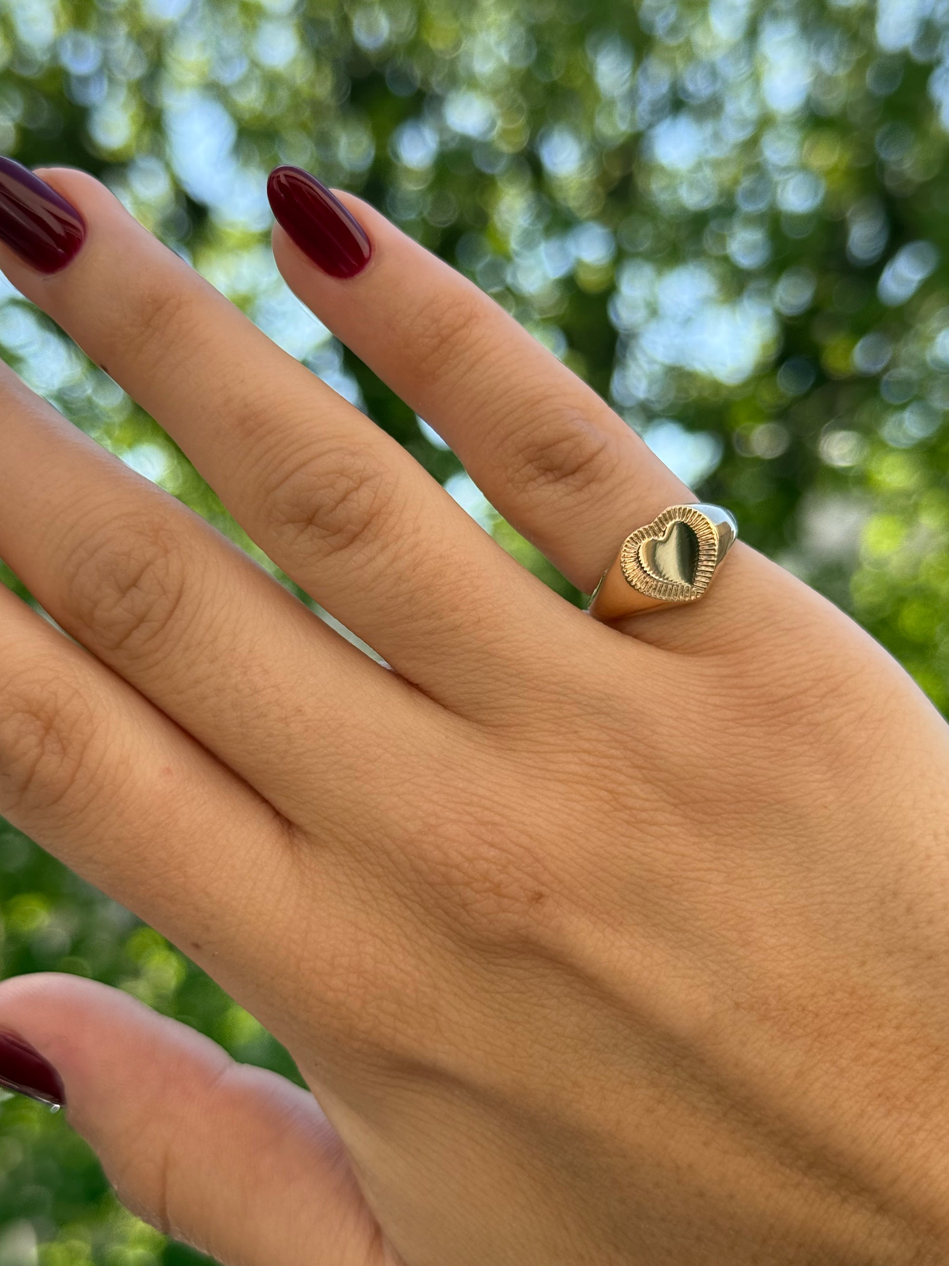Craquez pour cette chevalière en plaqué or 18 carats au design romantique et vintage. Son plateau cœur est délicatement strié pour un rendu élégant et lumineux.