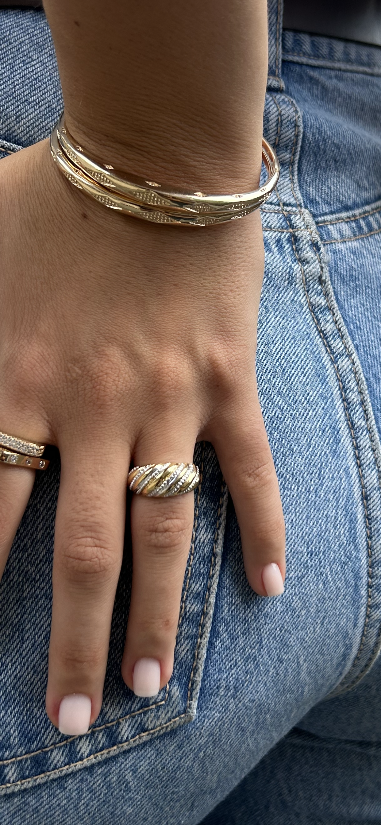 Notre bague LONDON, en plaqué or 18 carats, représente un magnifique croissant torsadé, évoquant la splendeur des astres nocturnes. Un bijou qui allie élégance céleste et brillance intemporelle, elle est conçue pour élever instantanément n'importe quel look.