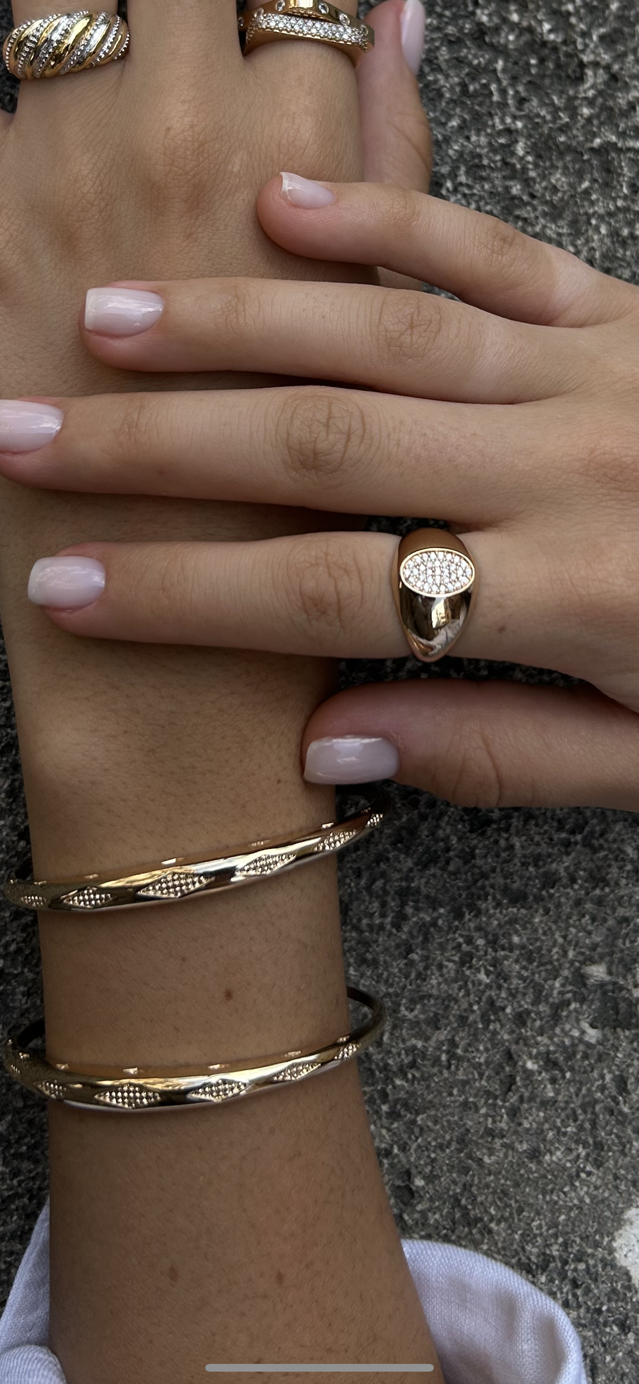 - Chevalière ovale ornée de zircons blancs étincelants.