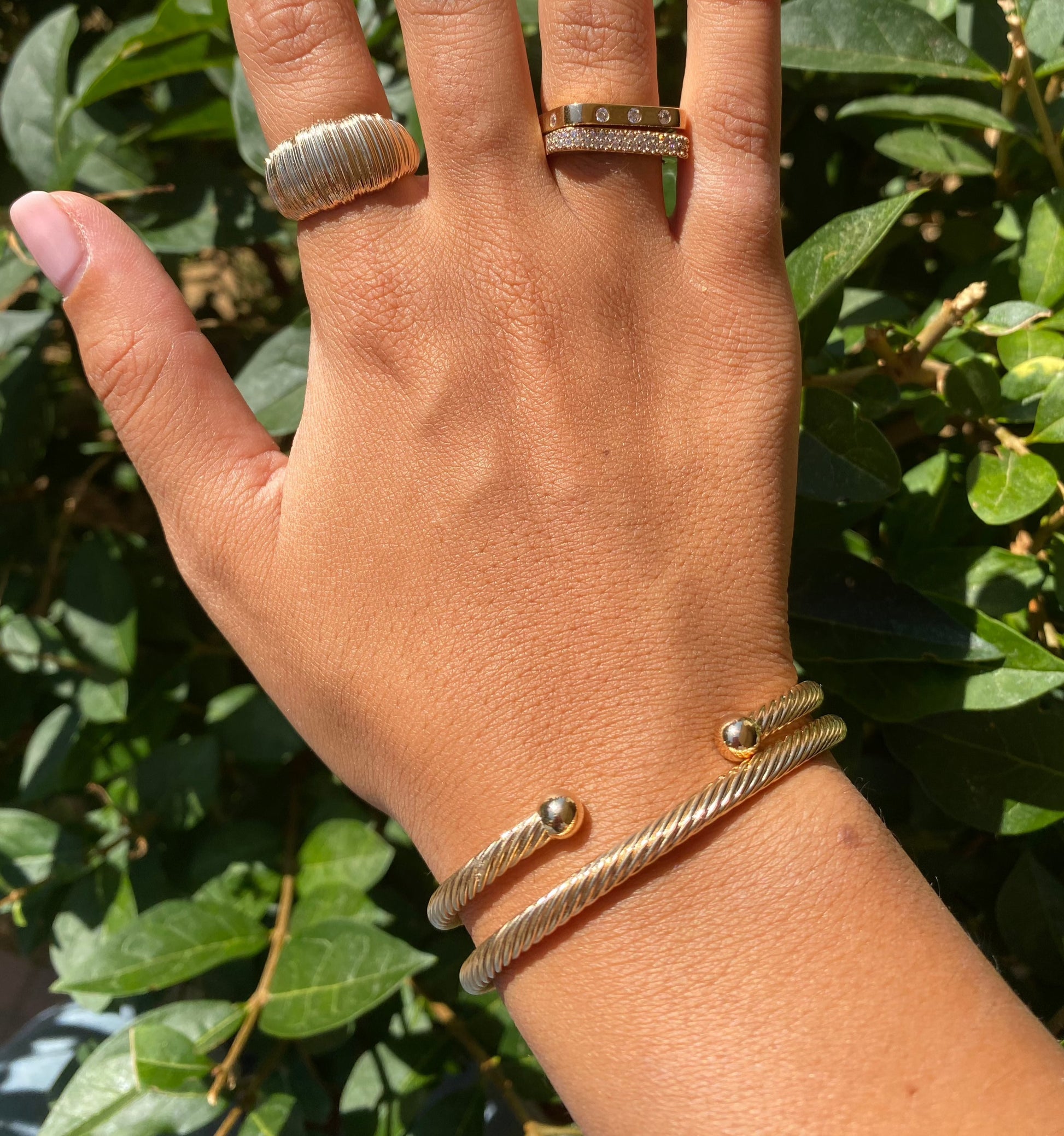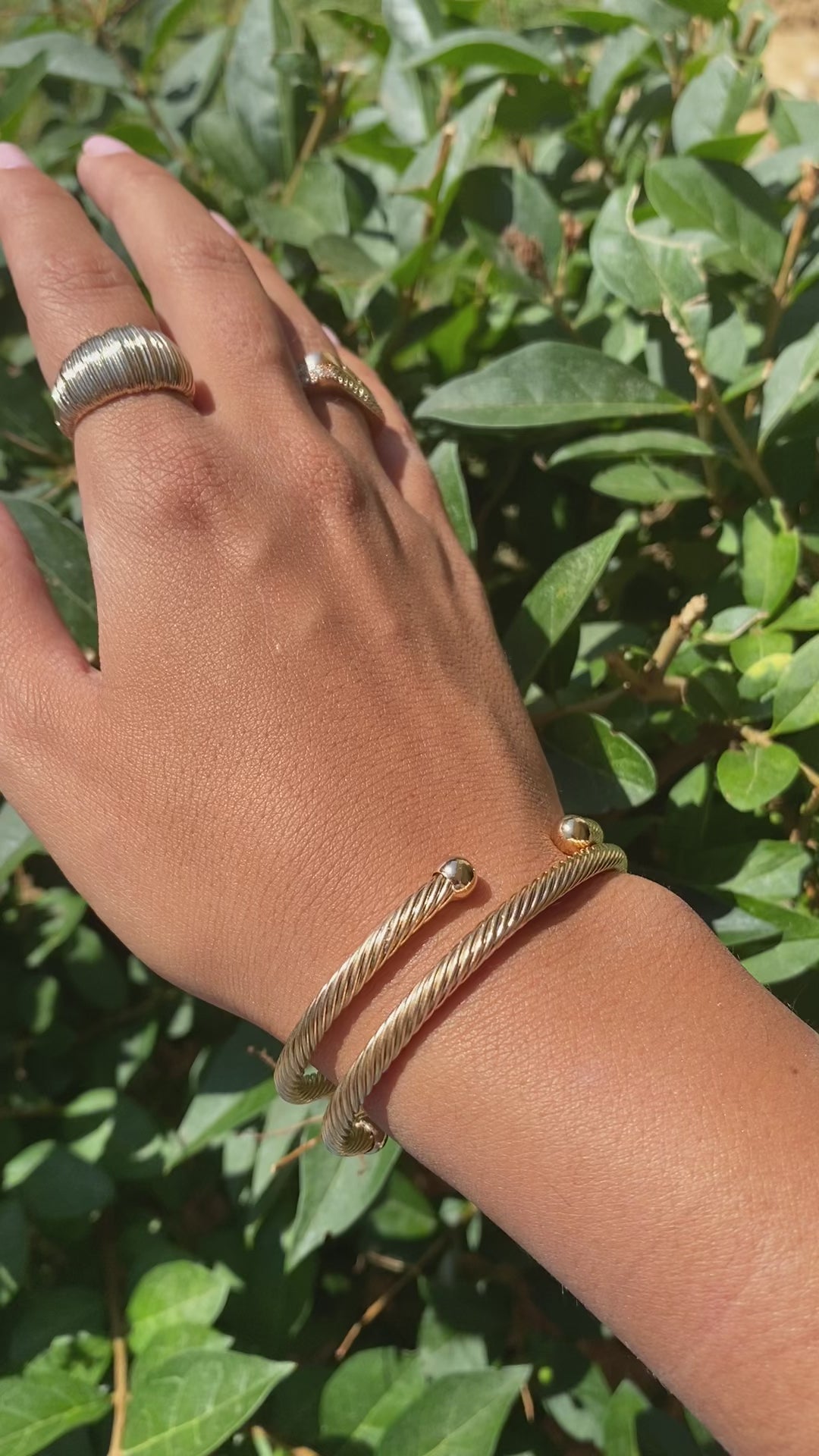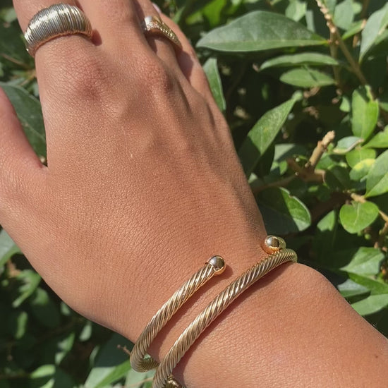 Le Bracelet Sheffield est synonyme d'élégance raffinée. Ce jonc en plaqué or 18 carats est finement travaillé et possède un ajustement flexible pour s'adapter parfaitement à votre poignet.