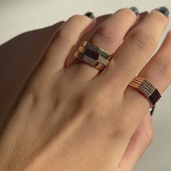 La bague GOLDEN est vendue en plaqué or ou en argent. Elle combine un design géométrique audacieux et des zircons scintillants pour un éclat remarquable. Avec sa structure imposante, elle ajoute une touche de luxe moderne, parfaite seule ou en accumulation. Se marie parfaitement avec la bague MOCCA .