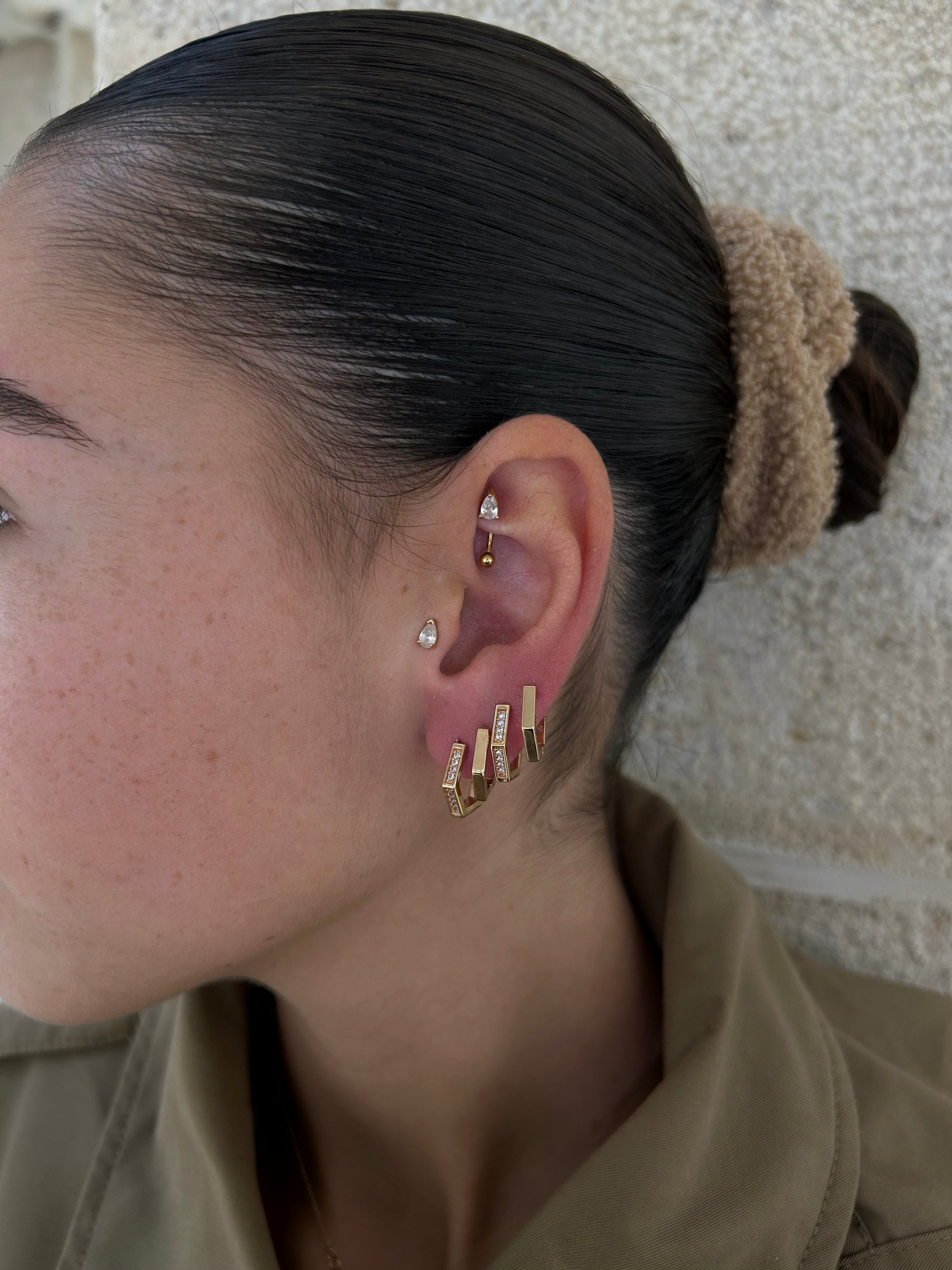 Avec son design audacieux et original, la boucle d'oreille HOT en plaqué or 18 carats, sertie de zircons scintillants ou sans, apporte une touche de caractère à votre style. Vendue à l’unité, elle peut être portée seule pour un look minimaliste ou en accumulation pour un effet encore plus percutant. Légère, brillante et pleine de personnalité, elle illumine instantanément n'importe quelle tenue.