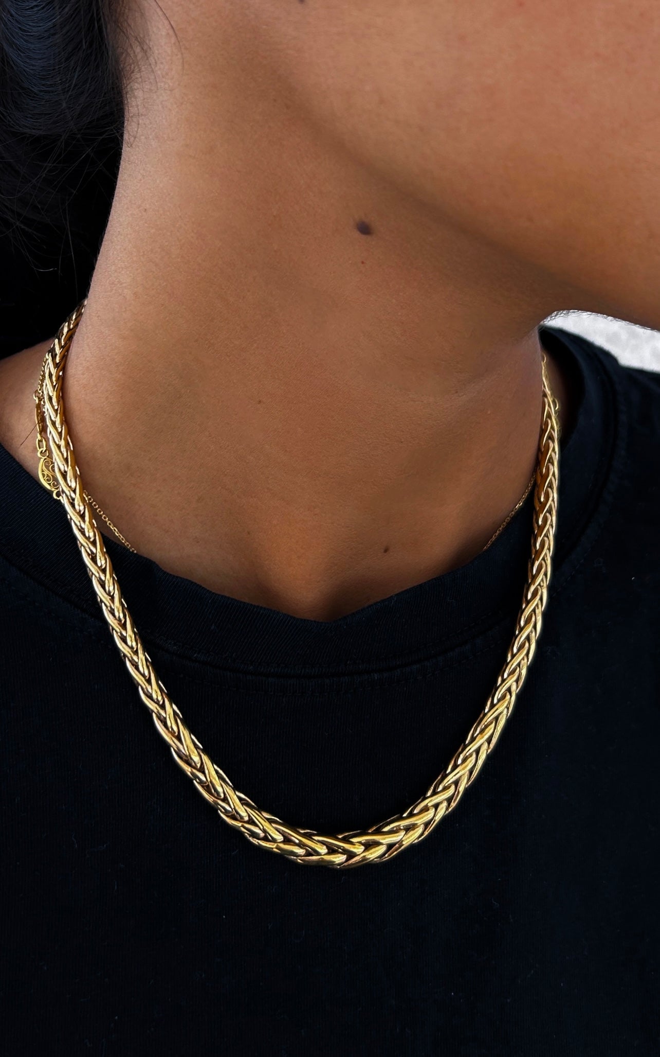 Optez pour l'élégance avec La Maille, un collier en grosse maille plaqué or 18 carats, 5 microns. Ce bijou robuste et raffiné apporte une touche de luxe et de sophistication à toutes vos tenues. Idéal pour sublimer votre style au quotidien ou lors d'occasions spéciales.
