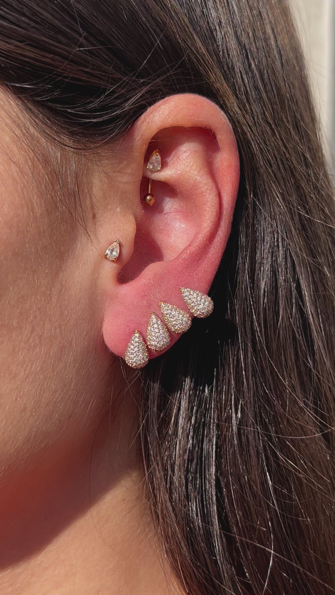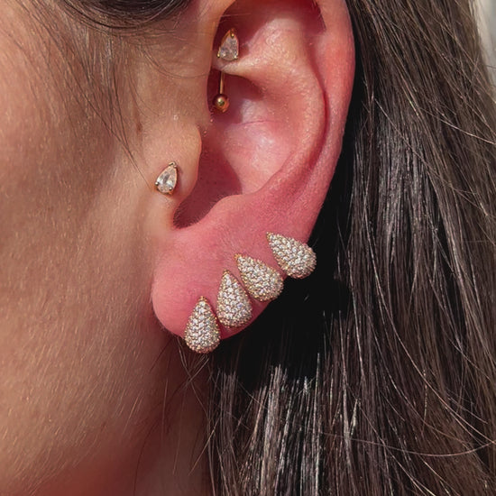 Petite et délicate, cette boucle d'oreille en plaqué or 18 carats et argent est entièrement sertie de zircons et en forme de goutte. Son éclat lumineux et son design raffiné en font l'accessoire parfait pour ajouter une touche de glamour subtile à toutes vos tenues. Élégante et intemporelle, elle se porte avec élégance au quotidien.