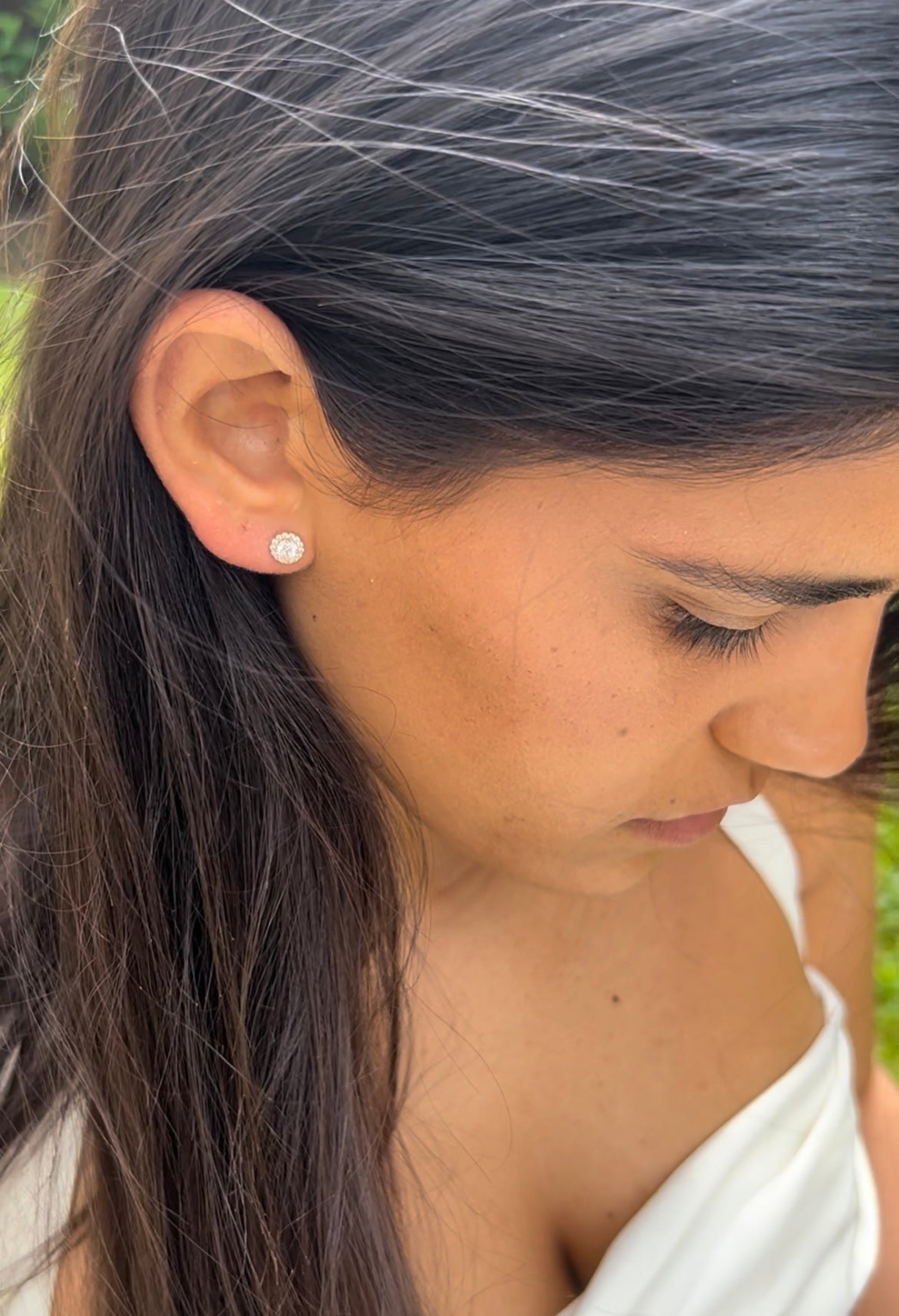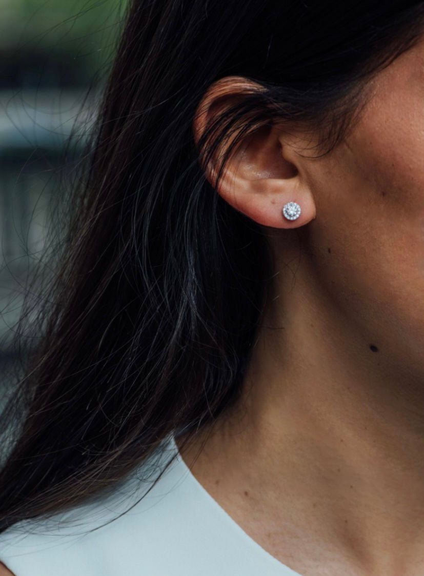 Boucles d'oreilles en argent ou plaqué or 18k , ornées d'un brillant rond serti, qui incarne l'essence même de l'élégance intemporelle.