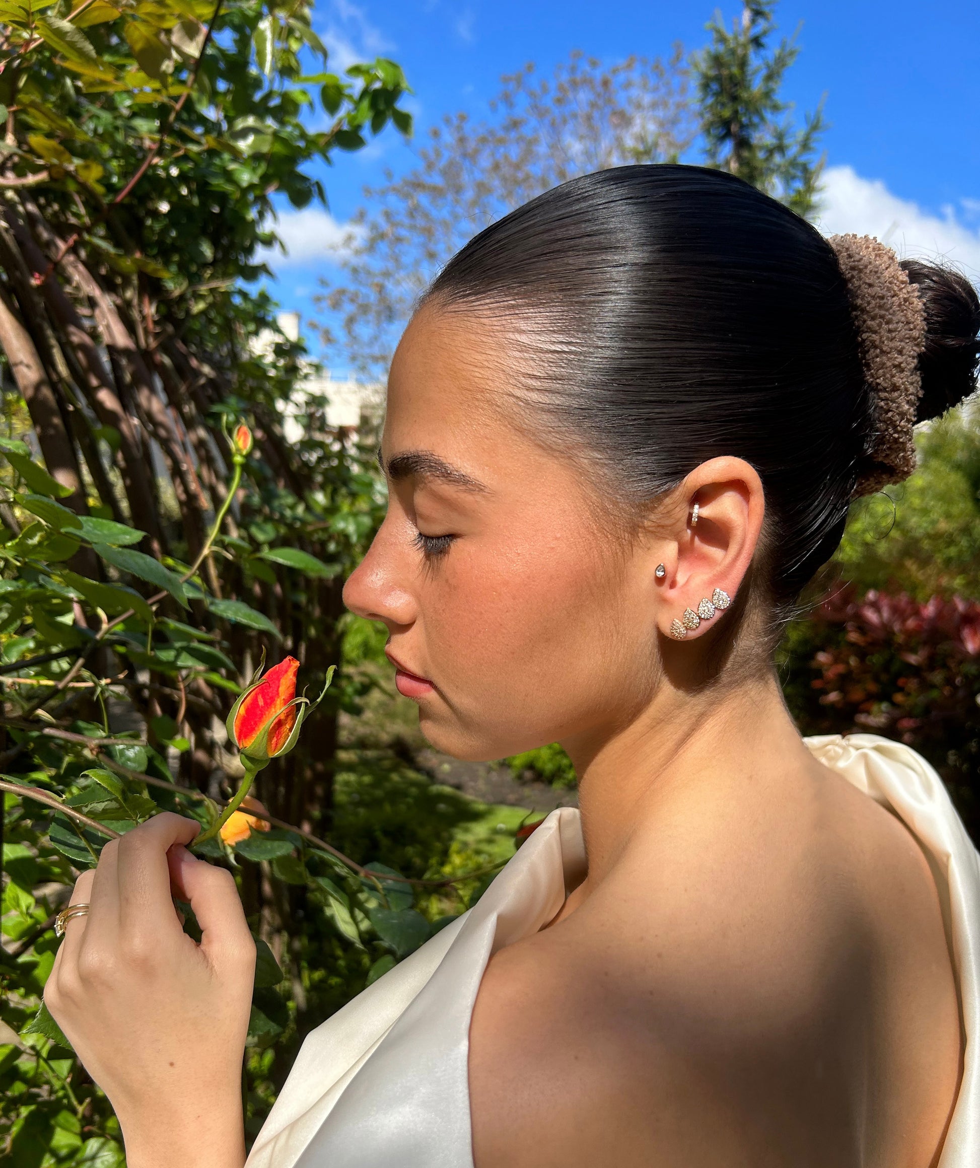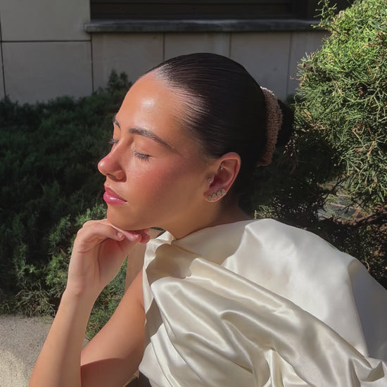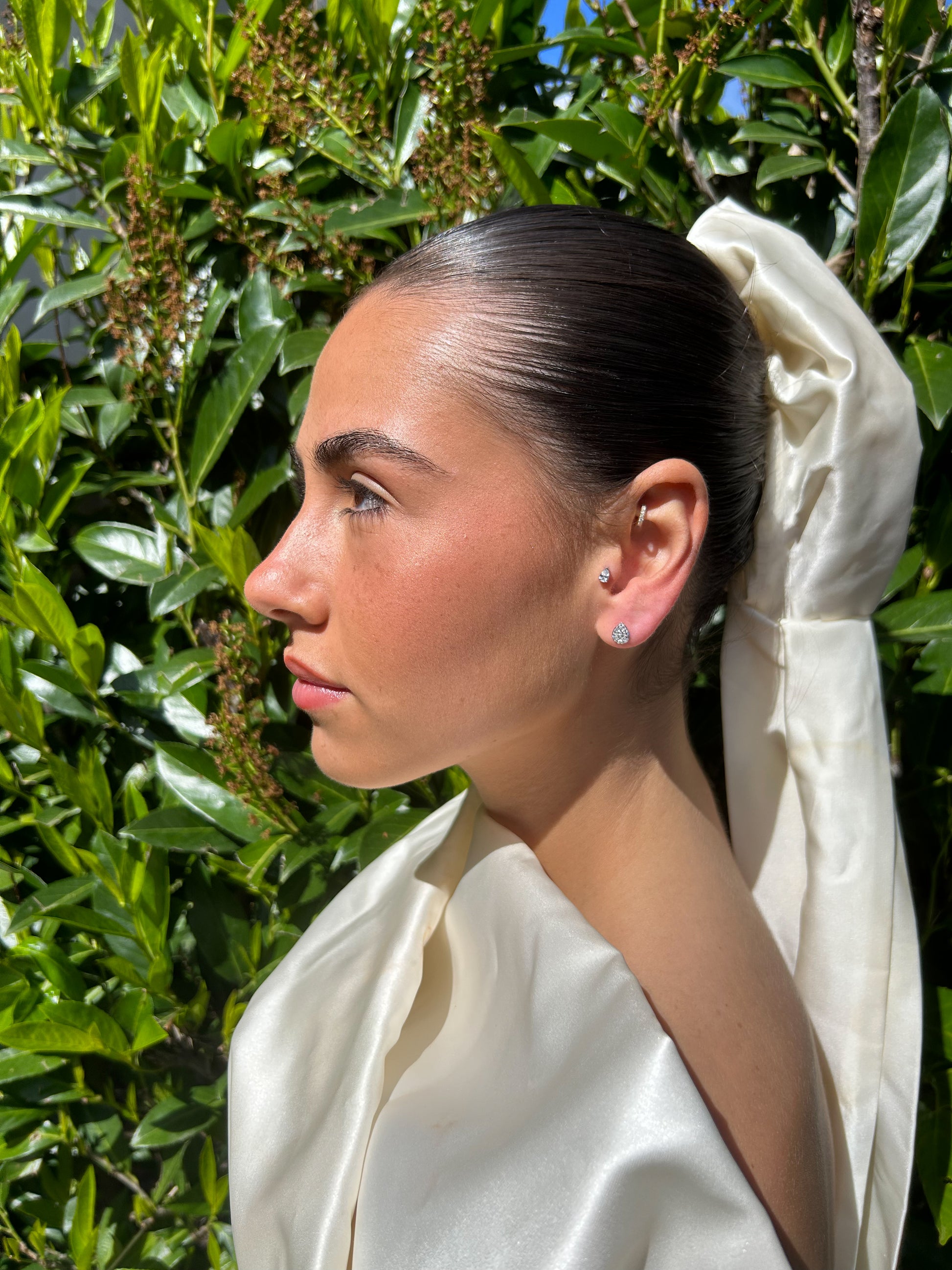 Boucle d'oreille en forme de poire, en argent ou plaqué or 18k, délicatement ornée de multiples brillants qui ajoutent une touche de brillance subtile et raffinée à votre look.
